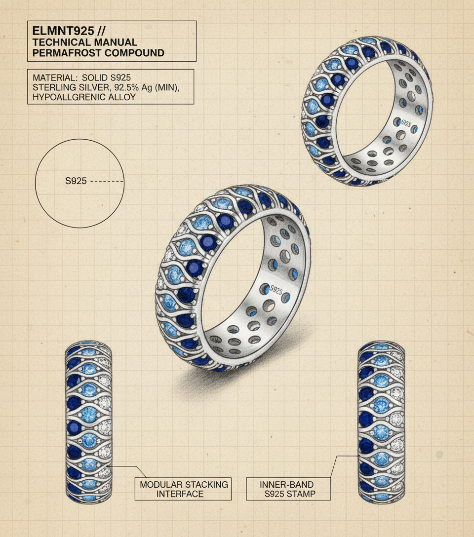 High-lustre sterling silver, engineered for daily wear. Not plated, not filled - Just the pure element, finished by hand to a mirror polish.